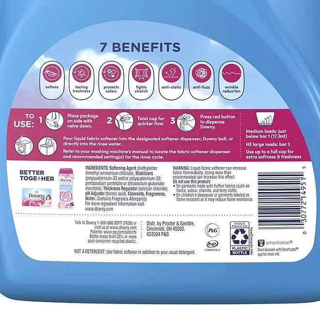 Experience unparalleled softness and freshness from your laundry with Downy Soft & Fresh Liquid Fabric Softener, designed to enhance your laundry experience. This generous 150 fl oz bottle offers enough fabric softener for up to 257 loads, ensuring your clothes feel as good as they smell. Infused with an uplifting April Fresh scent, this liquid fabric softener not only softens fabrics but also helps fight static cling and wrinkles. Elevate your laundry routine and enjoy softer, fresher clothes every day.