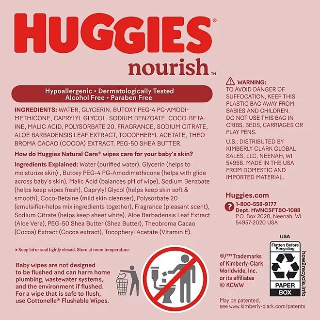With Huggies Nourish & Care Baby Wipes, you can give your baby a 4-in-1 Sensitive Skincare experience that cleans, hydrates, nourishes and soothes their sensitive skin. Plant-based since 1990*, each Nourish & Care wipe is made with cocoa and shea butter ingredients for a soothing scent, as well as 20% thicker** for a cloth-like feeling with every wipe.