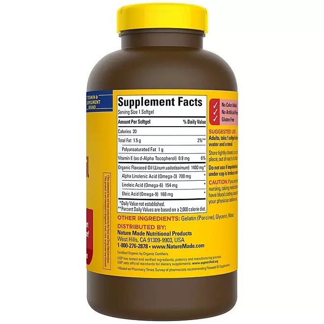 Nature Made is the #1 Pharmacist Recommended Flaxseed Oil Supplement Brand*. The brand guarantees to meet high-quality standards. All supplements are sourced from high-quality ingredients, giving you peace of mind with every capsule. Please note that these statements have not been evaluated by the Food and Drug Administration. This product is not intended to diagnose, treat, cure, or prevent any disease.