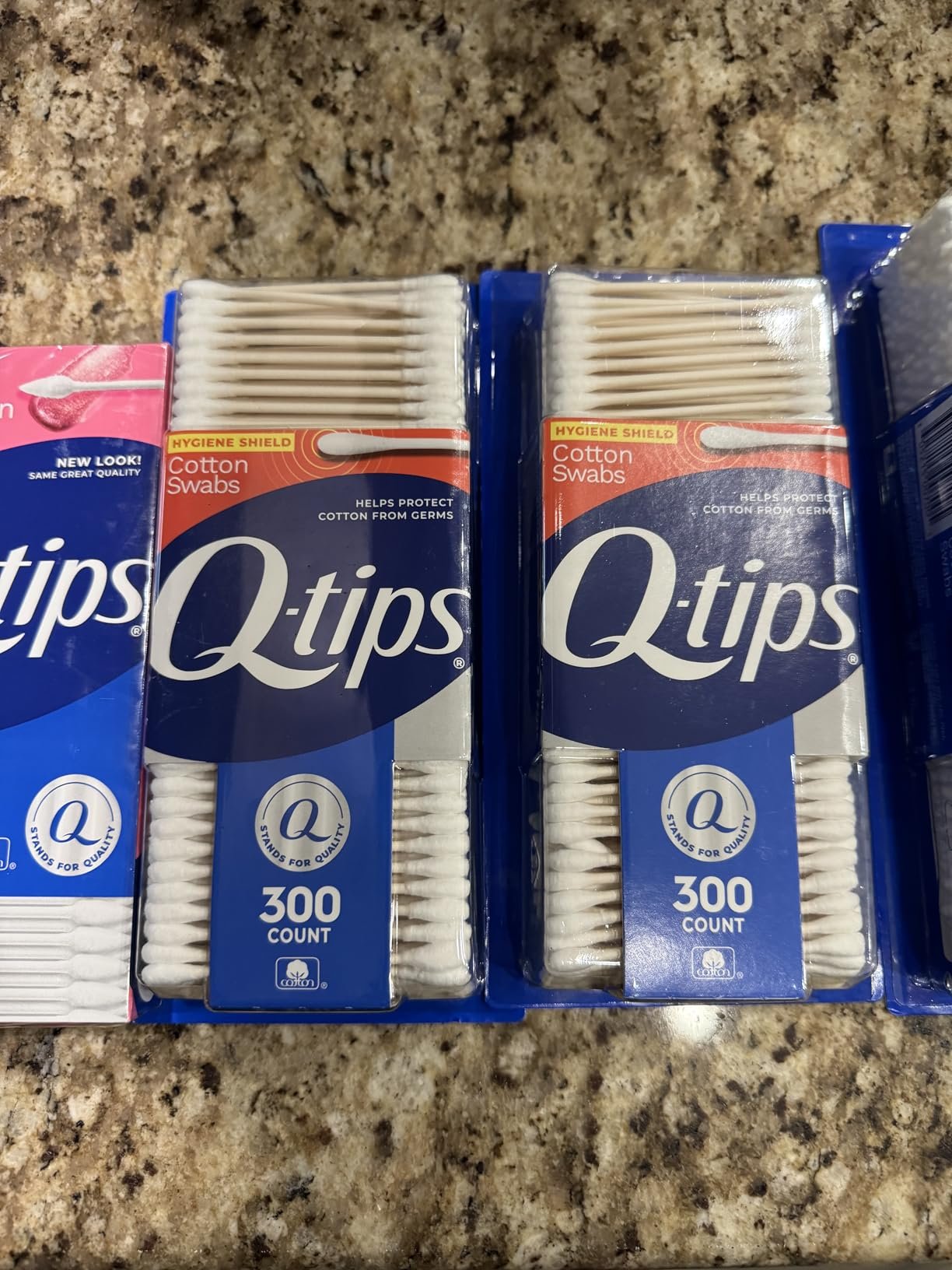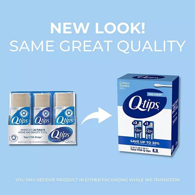Q-tips Cotton Swabs are your trusted brand for baby cotton swabs, baby cotton buds and cotton swabs for a number of different uses around the home or office. This useful package of swabs contains two packs of 625 cotton swabs and one pack of 500 cotton swabs, so you can place them strategically in your home.