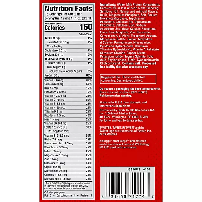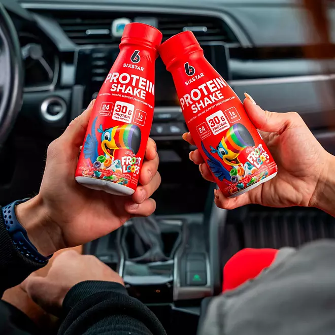 Despite its delicious taste, the Six Star Kellogg’s Froot Loops Ready-to-Drink Protein Shake contains only 1g of sugar and 160 calories per bottle. It aligns seamlessly with your health and fitness goals, making it a guilt-free indulgence. Enjoy the flavors you love without compromising on your diet.