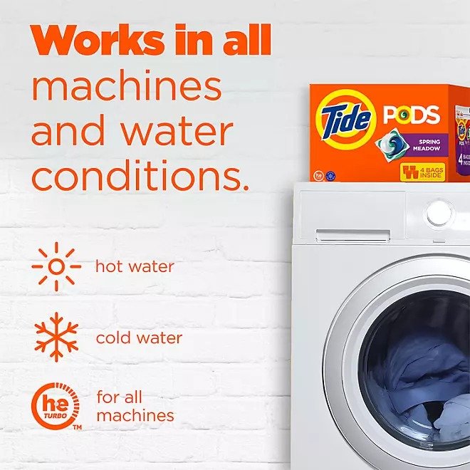 Tide PODS are formulated with quick collapsing Smart Suds, targeting tough stains and working effectively in both High Efficiency, standard front-load, and top-load washing machines. They are also compatible with all water temperatures. For superior performance, place two Tide PODS pacs into the washing machine drum before adding clothes for large loads. For smaller loads, use one laundry pac.