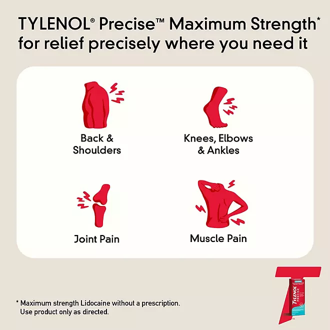 Experience the soothing power of this topical analgesic, specifically designed to provide cooling, penetrating relief for minor joint and muscle pain. This rapid-absorbing, cooling formula, infused with 1% menthol and maximum strength 4% lidocaine, is a reliable solution for pain relief. This analgesic is a product from the trusted Tylenol Precise line, combining the benefits of lidocaine and menthol to effectively relieve pain.